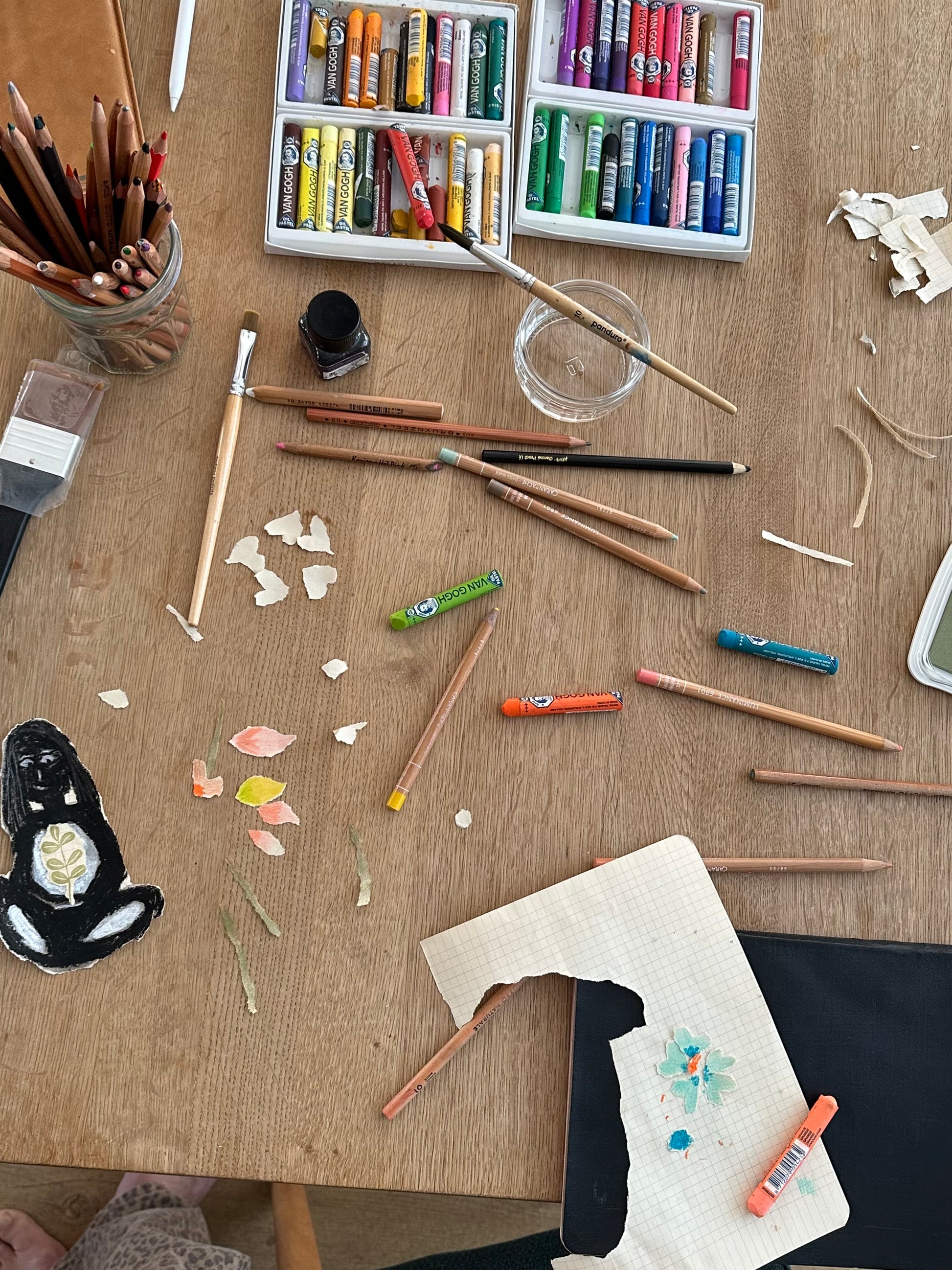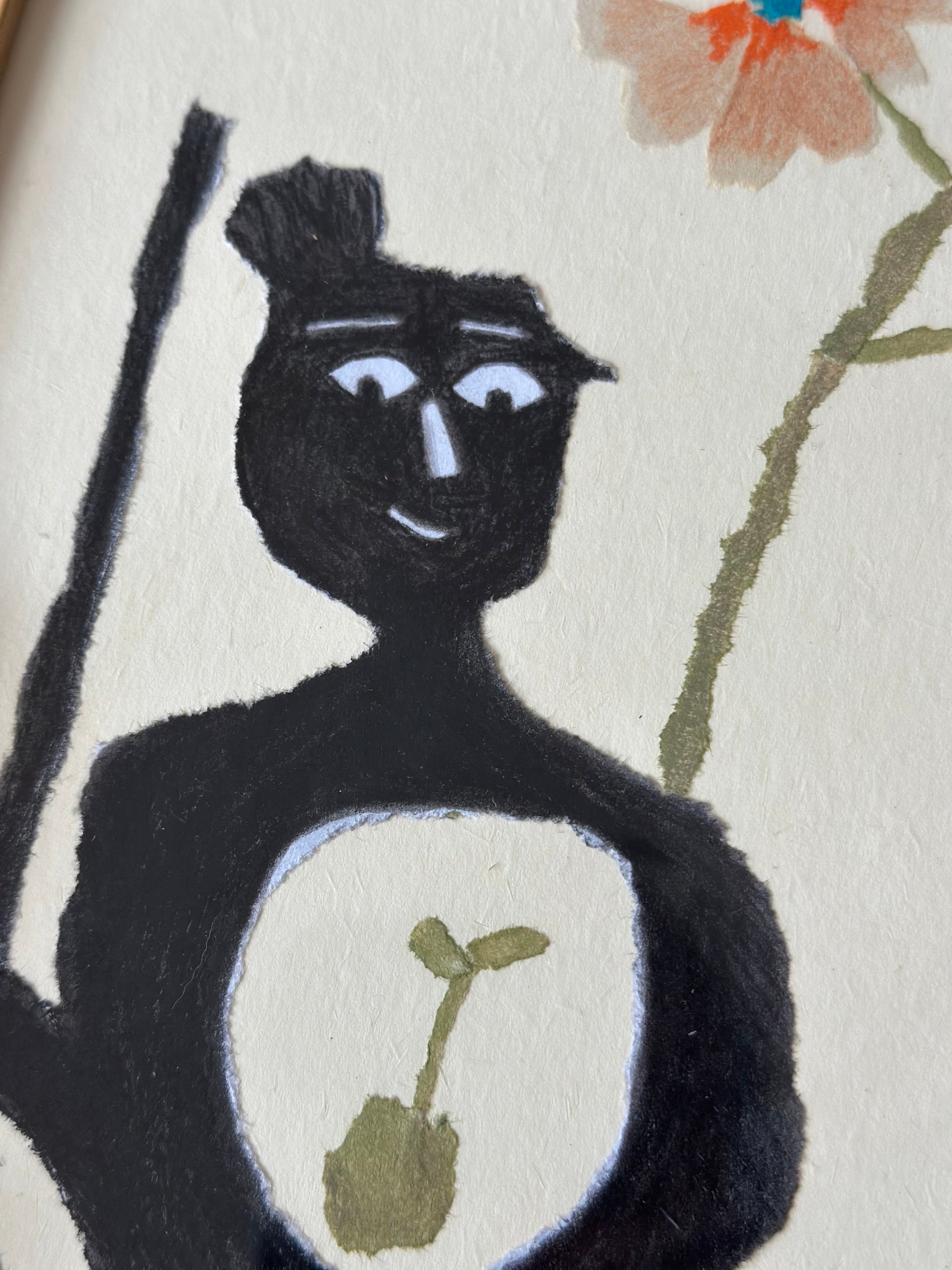 Het figuurtje maakte ik van inkt, dikte ik aan met zwarte conté potlood en scheurde ik daarna ook uit.