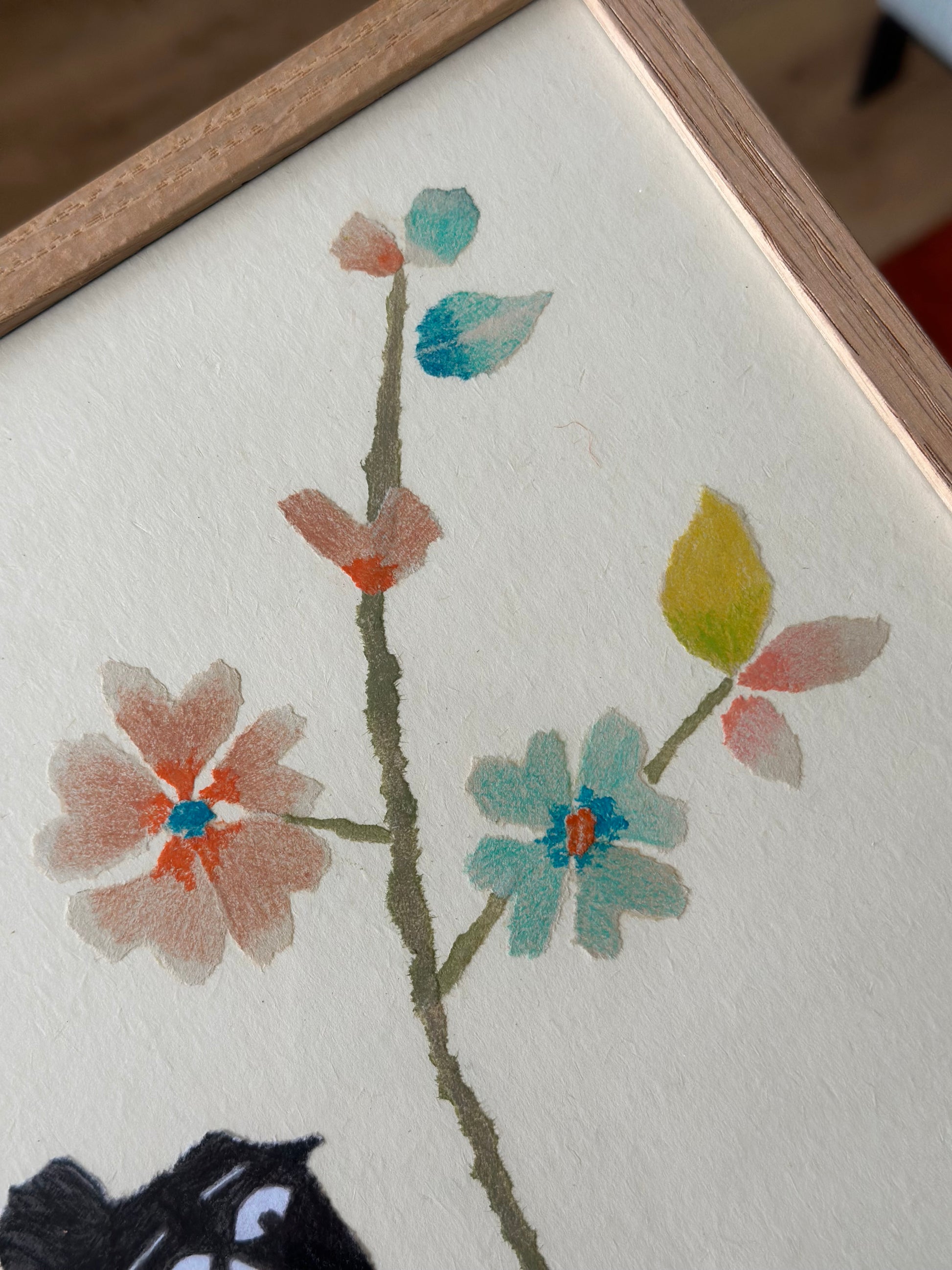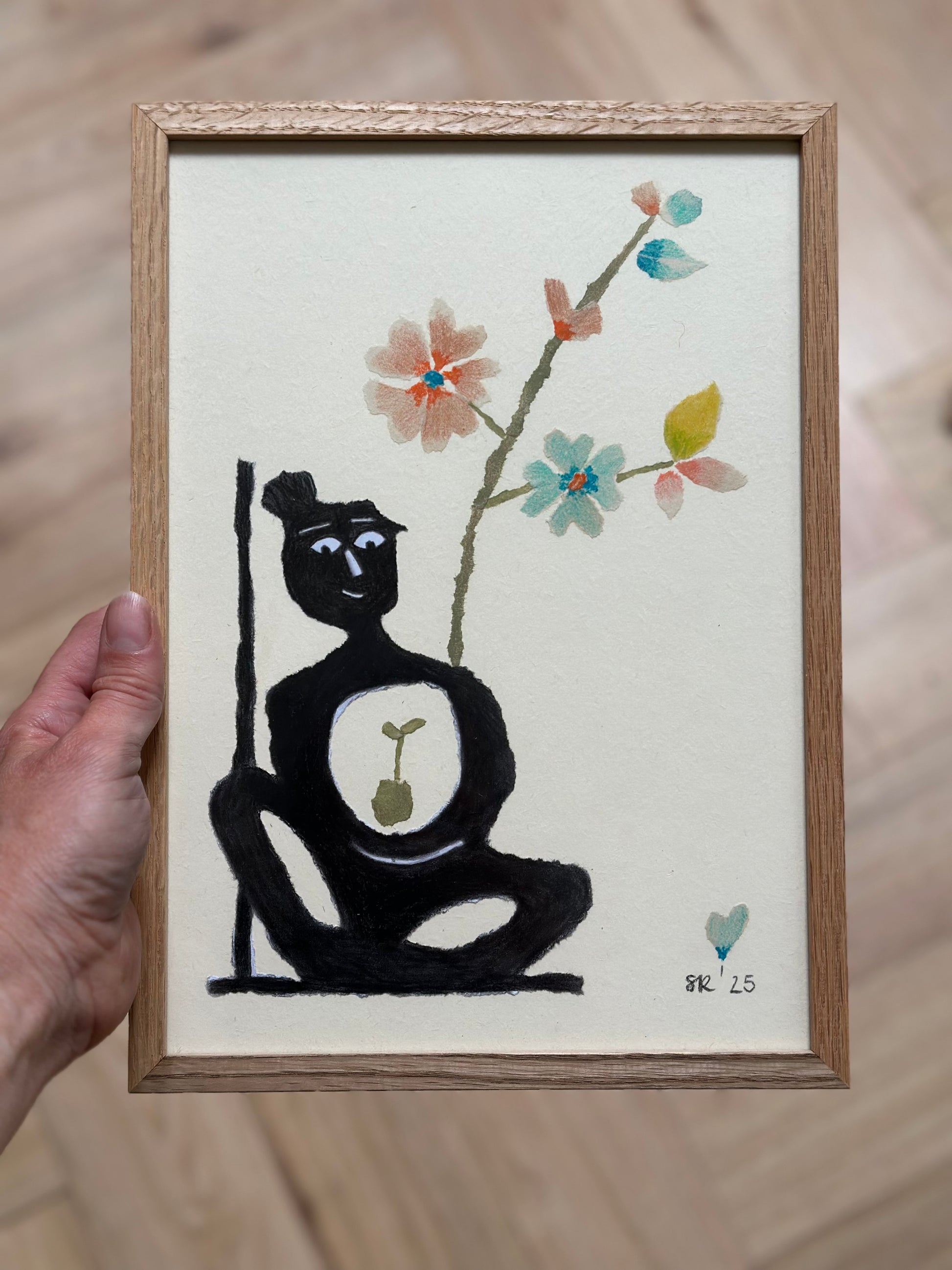 De oogst is gemaakt op A4 ‘paper board’ en komt in een beukenhouten lijst met glas.