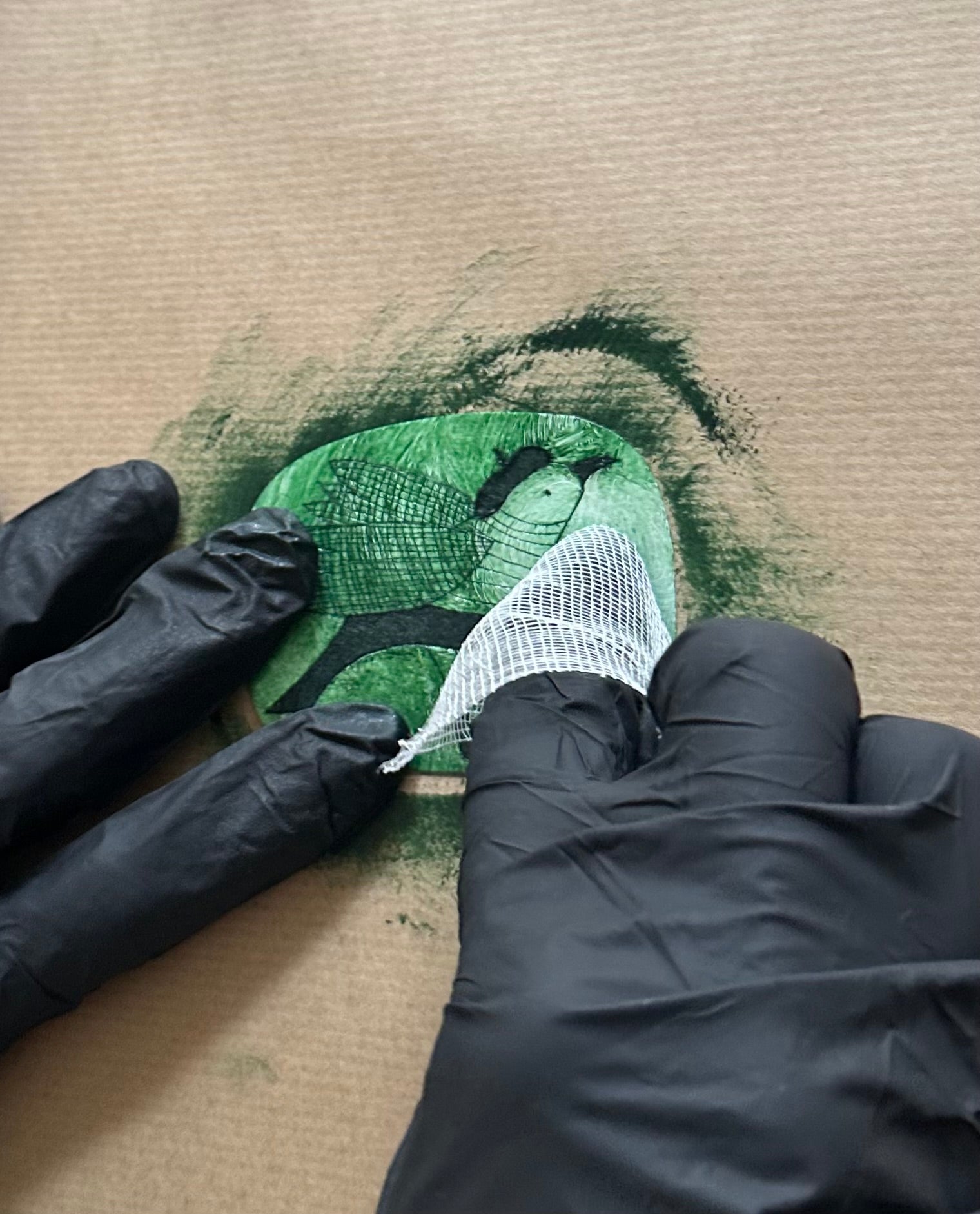 Het blijkt geschikt om met een scherp voorwerp (net zoals bij etsen) een tekening in te krassen. Nadat je de tekening hebt ingewreven (en uitgewreven) met inkt kun je die door een pers draaien. Je afbeelding wordt op die manier in het papier gedrukt. Doordat het karton is kun je niet eindeloos prints van draaien maar krijg je unieke en kleine oplagen.